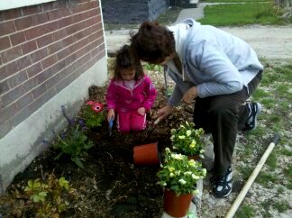 After that great experience with our kids and their grandparents we specifically decided to start a tradition of planting flowers each Easter weekend. It just seemed like an appropriate time to nurture new life. This is us this year...my daughter did the second one all by herself.