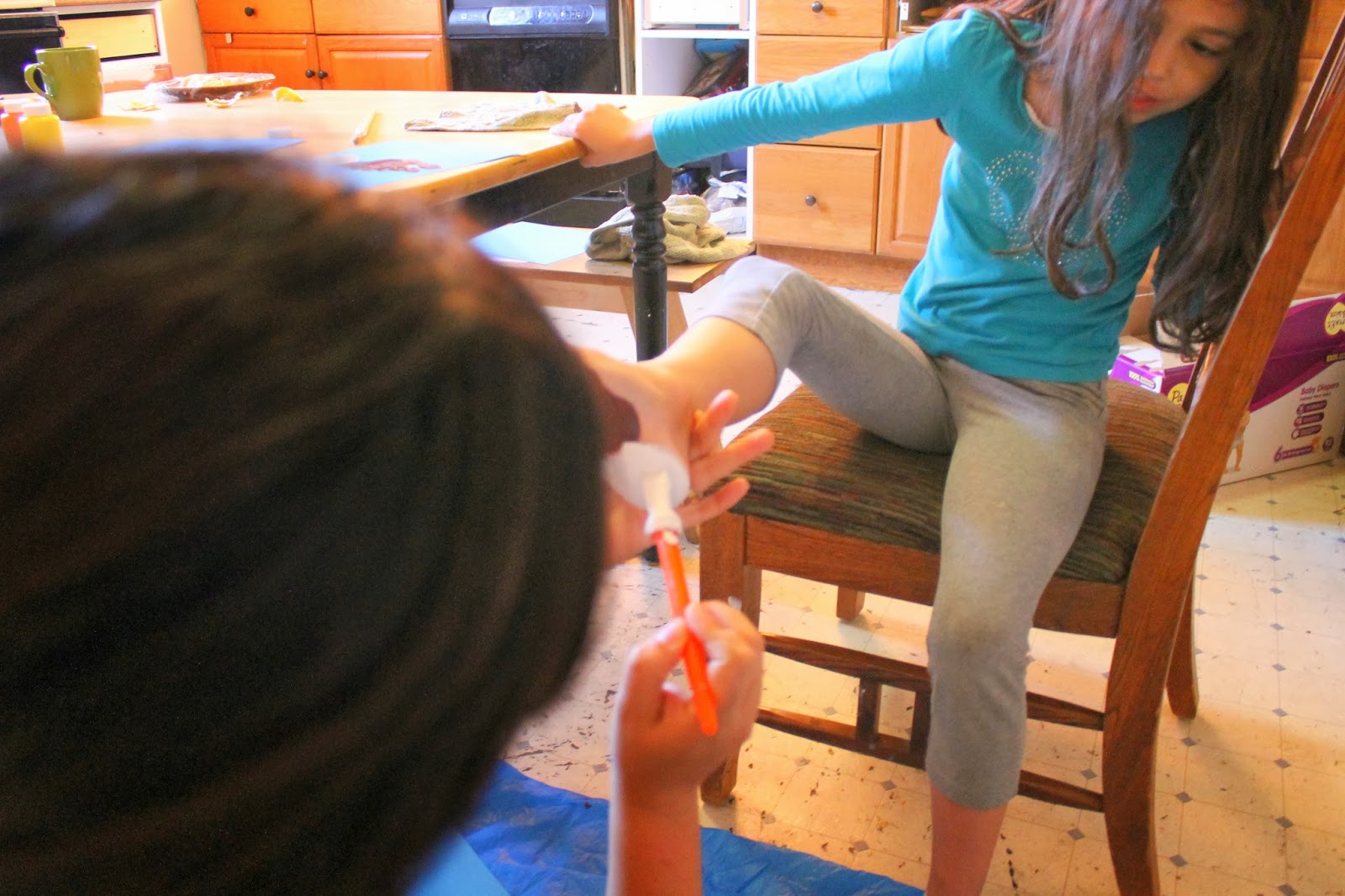 So, I got to work with my finger paint and my kids. We came up with these bald eagle paintings...